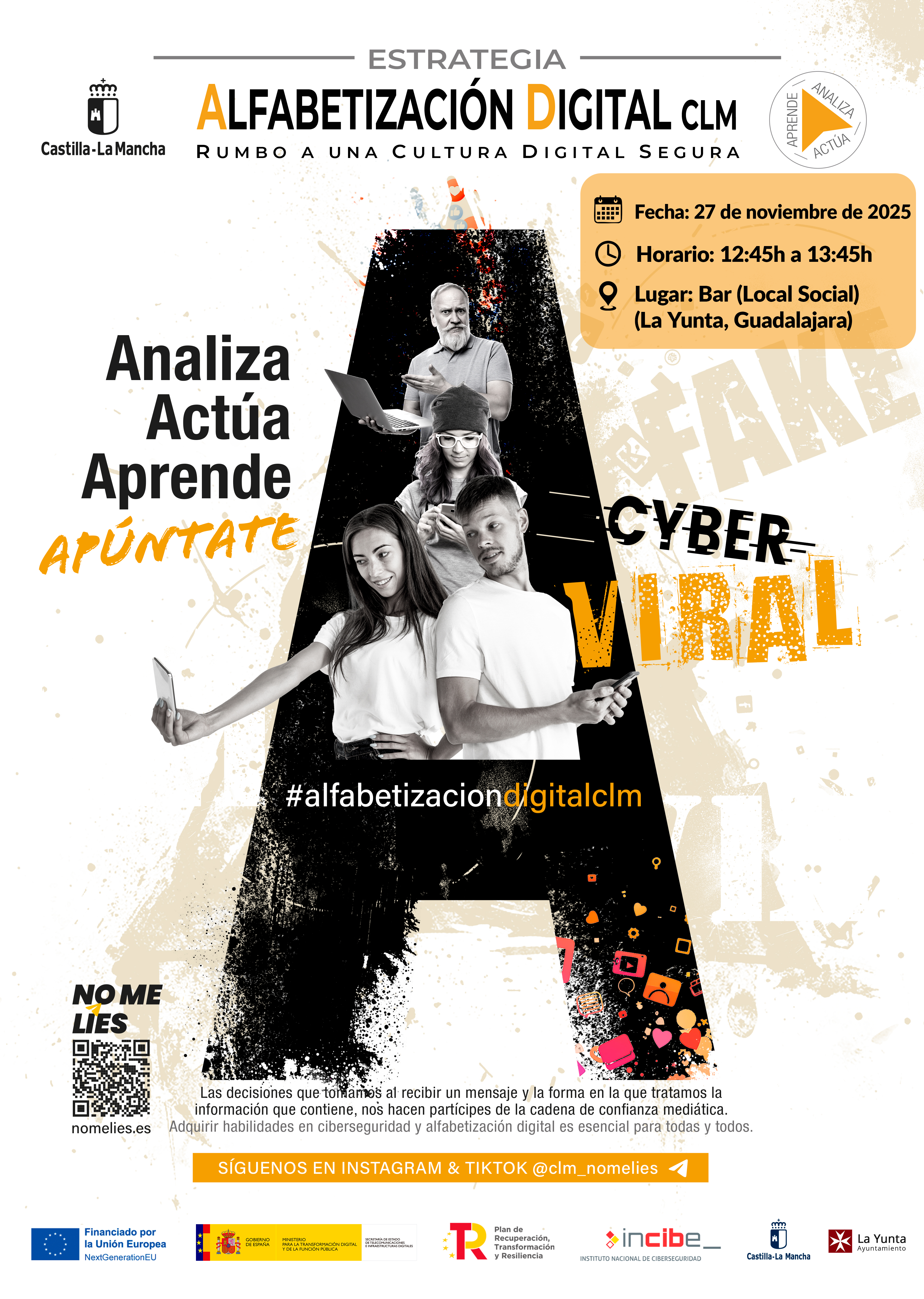 "Rumbo a una Cultura Digital SEGURA", Ingeniería Social Charla-Taller sobre Ciberseguridad y Alfabetización La Yunta (GU) Guadalajara Bar (Local Social) 27-11-2025 12:45 Imágenes